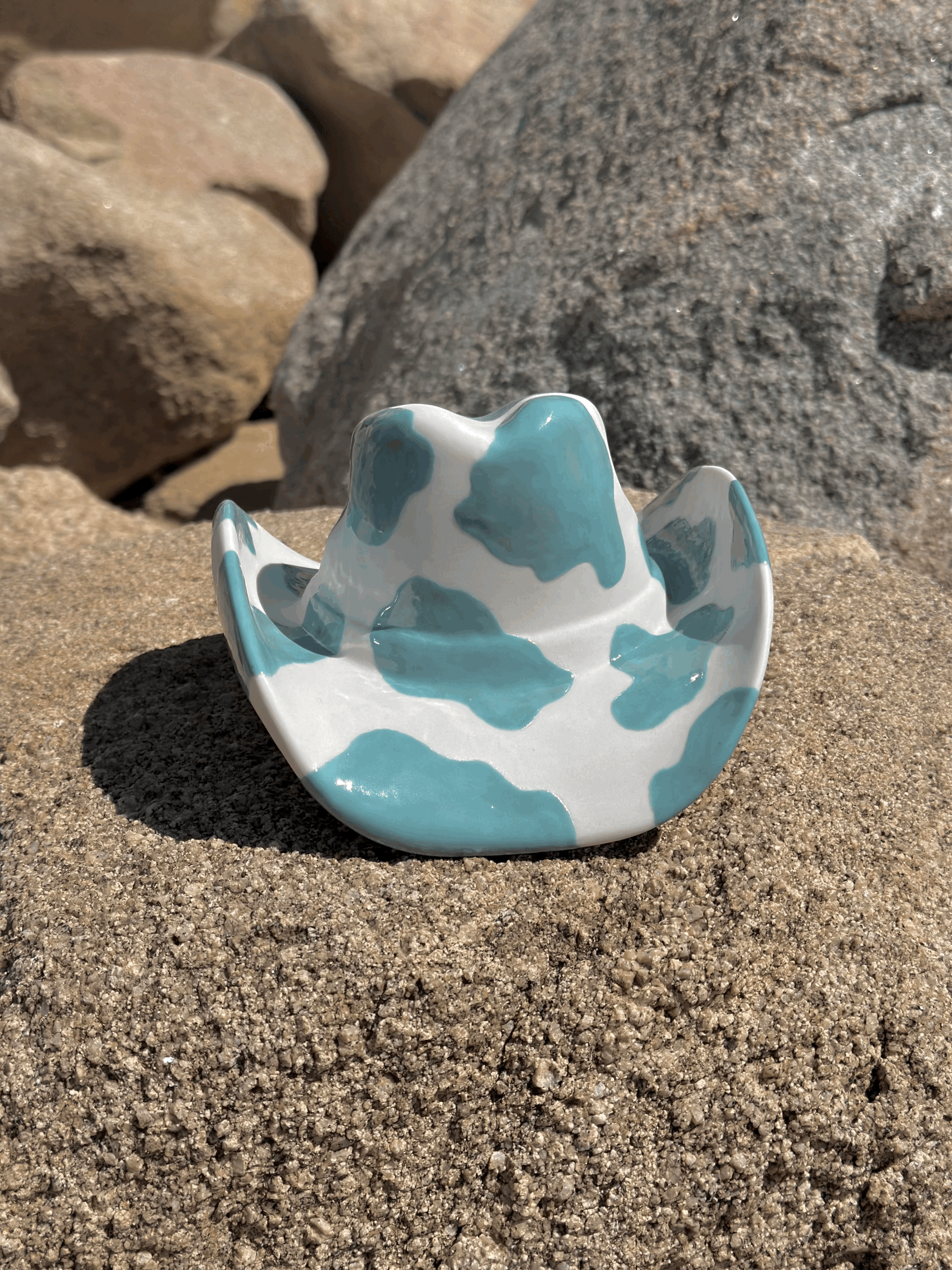 Shop › Turquoise Cow BB Hat Turquoise Cow BB Hat $374.00 Chonky lil cutie, the BB Hat. Perfect little porcelain sculpture for your home.Size: 4” x 6” x 7.5” Chonky lil cutie, the BB Hat. Perfect little porcelain sculpture for your home.Size: 4” x 6” x 7.5” Get notified by email when this product is in stock. Howdy! Sign up to receive updates. Add To Cart Added!
